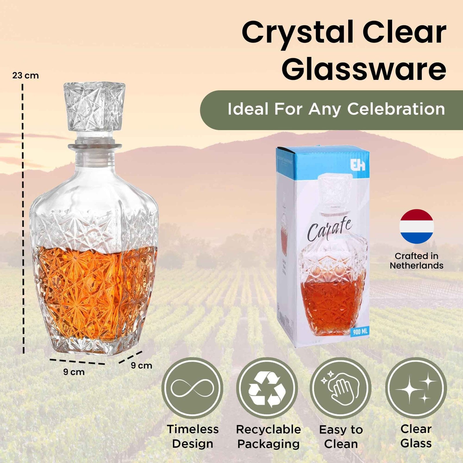 Class up your home bar by storing an entire bottle of your favourite whiskey, brandy or liquor inside this whiskey decanter. This decanter is designed with beautifully carved patterns giving it that luxurious style to it. It also has an airtight lid, which ensures the long-term preservation of your favourite drink. The classic design allows you to combine the decanter with any style of table decoration.
