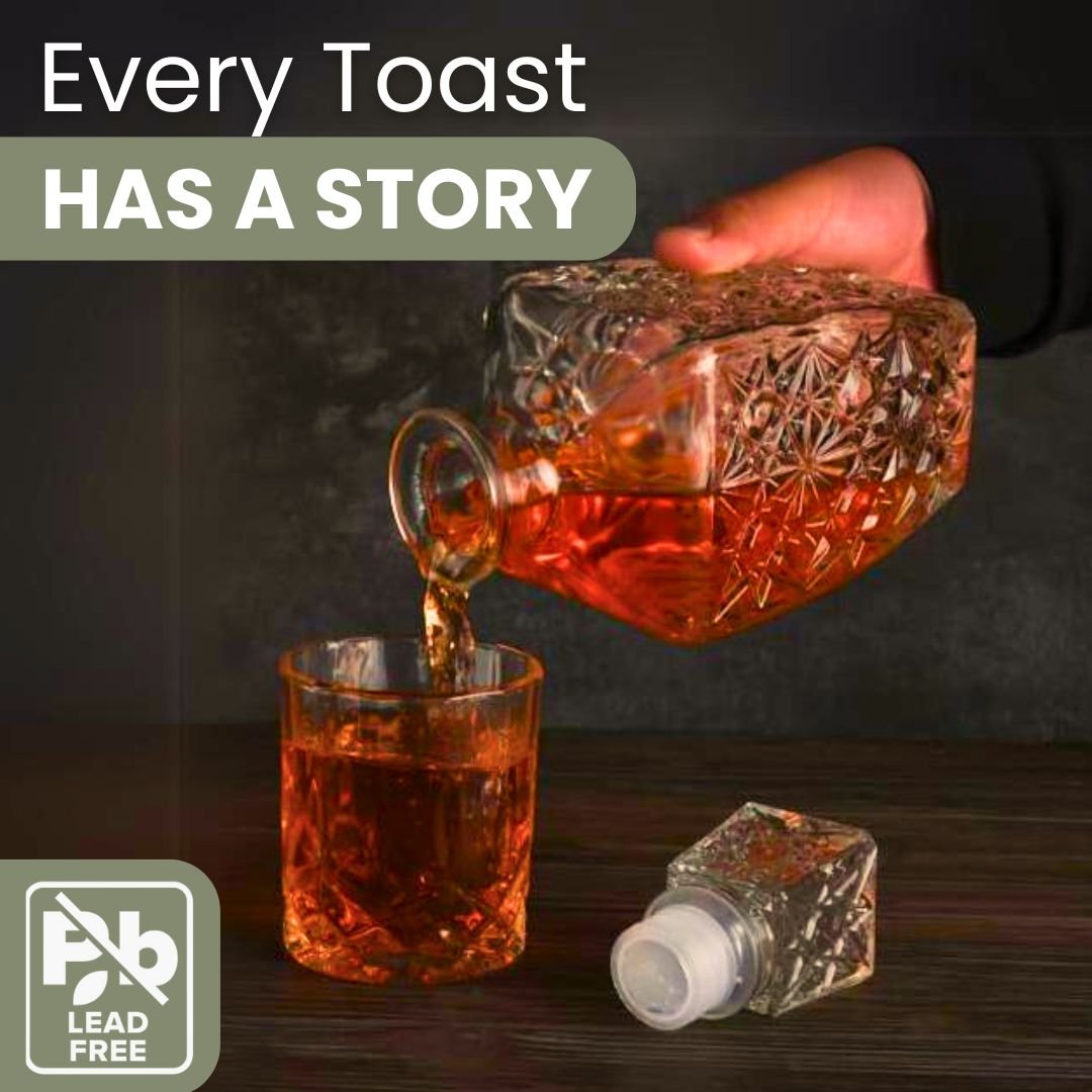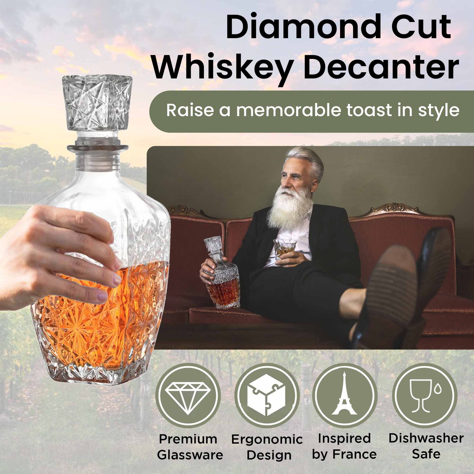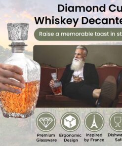 - Stylishly serve your guests whiskey with this beautiful glass decanter.